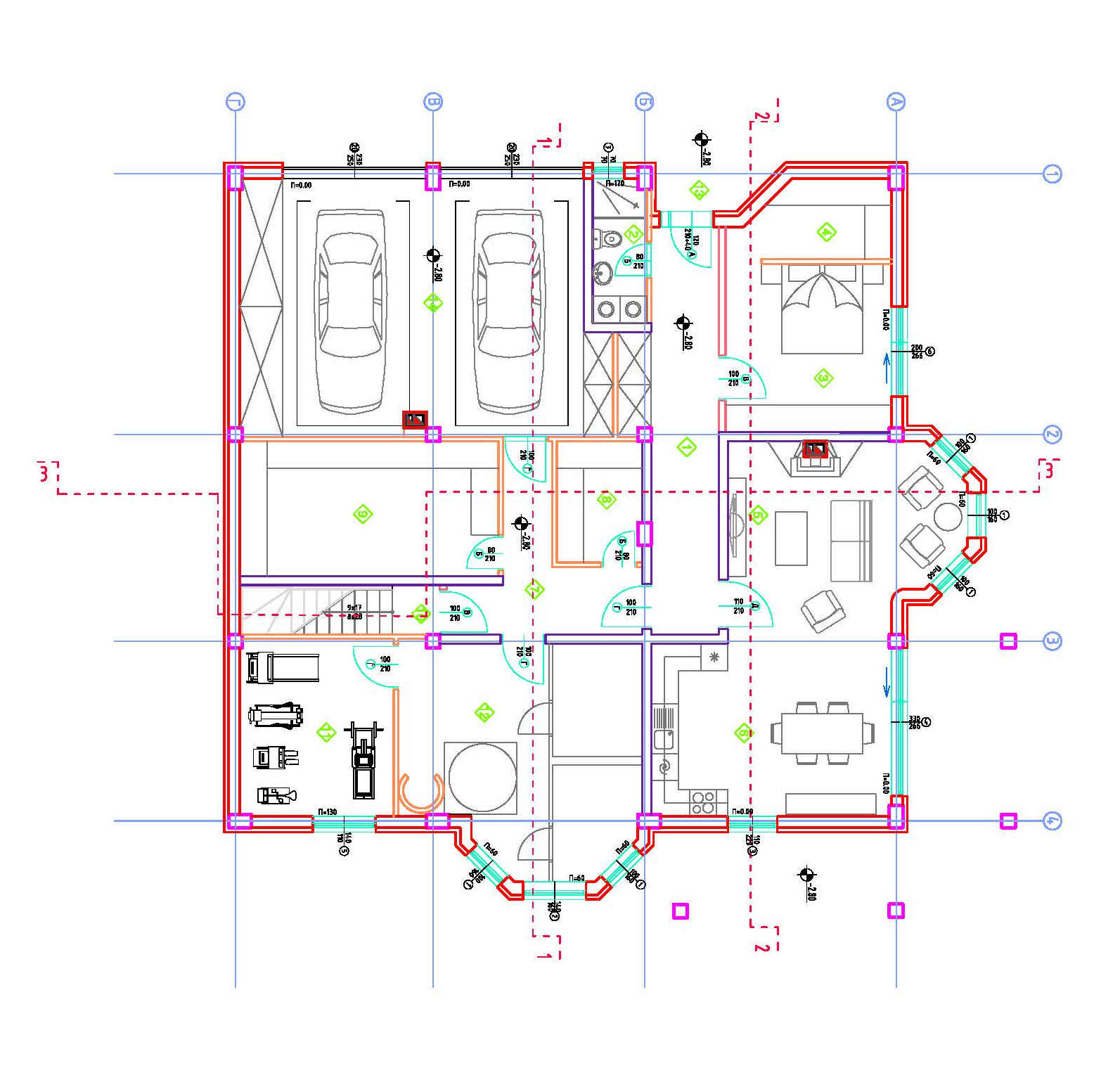 Целото приземје е подигнато од кота на терен за 45 см .Влезот во објектот е преку влезен трем подигнат на три скалила.